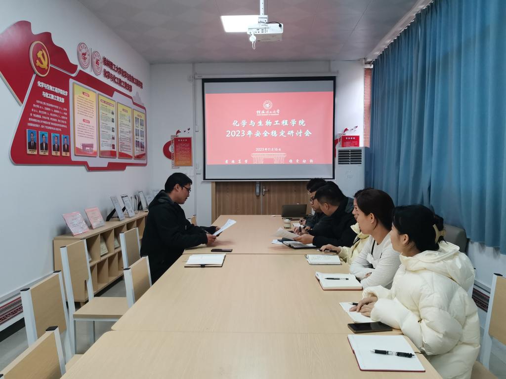 为进一步落实好安全稳定工作,积极构建平安和谐校园。11月16日上午,学院在雁山校区12栋萃华楼连廊会议室组织召开了2023年安全稳定研讨会。学院党委副书记李少华及全体专兼职辅导员参加了本次会议。