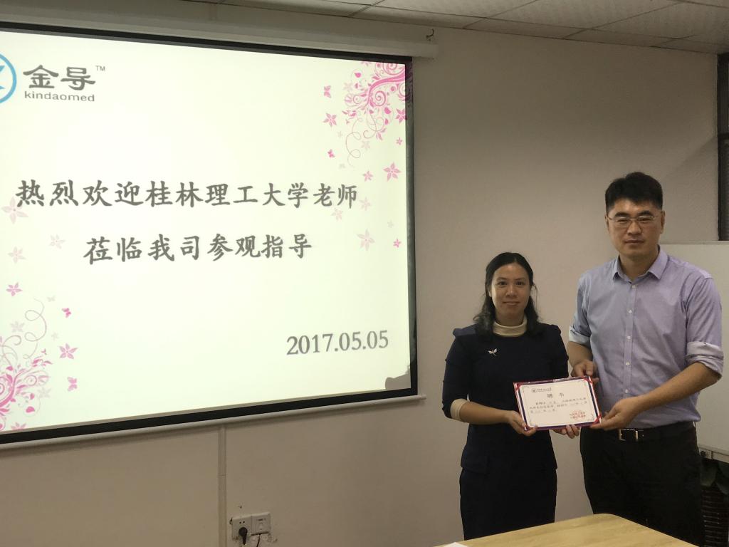 在广东珠海金导医疗科技有限公司,该公司时勇总经理热情接待了陶副书记一行。在座谈会上,公司陈世斌副总经理从公司的业务和定位、产品特点及应用、发展目标和规划、运营模式和合作愿景等方面做了详细介绍。双方就大学生创新创业、实习实训、科研成果转化等方面进行了合作洽谈,并签订了校企合作意向书。随后,陶剑飞副书记还为该公司时勇总经理颁发了快看漫画