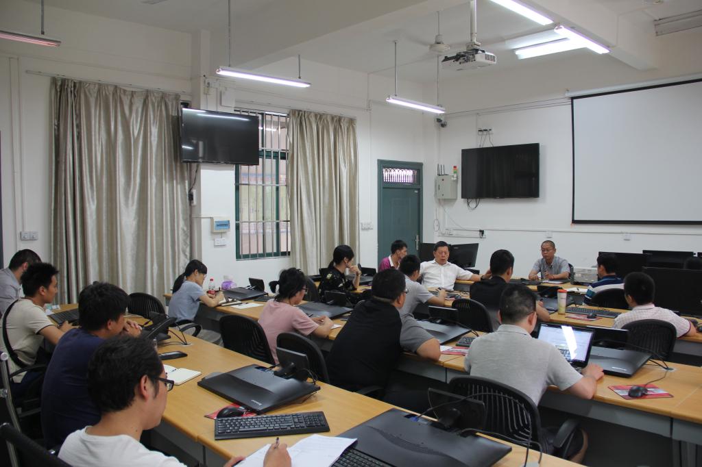 在雁山校区12120虚拟仿真控制室召开化学工程与工艺专业认证工作督导会。学院副院长潘宏程及专业认证各分工小组主要负责人参加了会议。会议由学院党委书记梁军主持。
