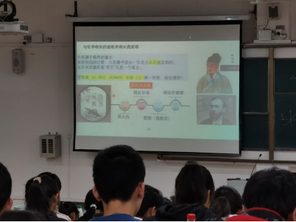 朱课长首先从化学工程与工艺专业的形成讲起,讲了化学学科的分支、化学学科的定义、化学的发展,以中国四大发明和化学验毒的故事为引,给学生讲授了化学在生活中的应用;然后以思维导图为引,讲述了化学工程与工艺专业在国民经济中起重要支撑作用,专业的发展前景不可预期,同时希望同学们热爱自己的专业,即使将来不从事本专业相关的工作,专业知识扎实也会给自己更多成才的机会;最后结合自己在日东精密回路技术有限责任公司中的成长经历,现身说法,讲述了目标在工作成长中的作用,并要为了目标脚踏实地的制定计划,逐步实现自己的目标。“宝剑锋从磨砺出,梅花香自苦寒来”,是朱课长对在座200余名同学的真切寄语。