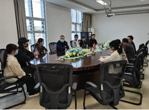 副院长何方与华信制药和科伦制药公司的人事主管共同商讨了关于学生在公司完成毕业设计(论文)工作的详细安排,并感谢公司为快看漫画