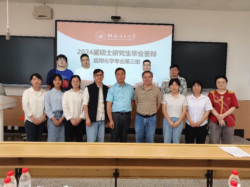 6月6日,由应用化学教研室硕士生导师指导的2021级硕士研究生在屏风校区参加了毕业论文答辩工作。此次答辩各答辩小组的主席由广西师范大学化学与药学院赵书林教授和田建袅教授、桂林电子科技大学材料科学与工程学院孙立贤教授、桂林医学院药学院顾生玖教授分别担任。