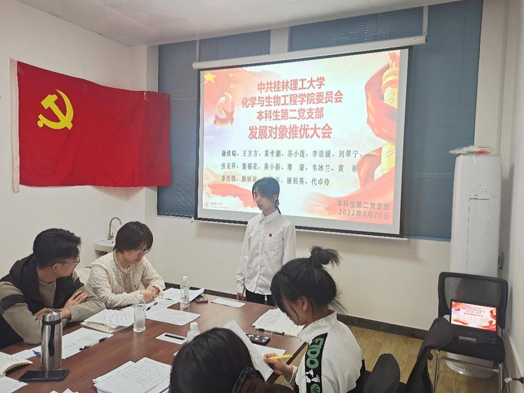 会议伊始,17名入党积极分子依次介绍他们对党的认识、入党动机以及入党所具备的条件,支委会酝酿讨论发表意见,并根据他们所演讲的内容进行提问,进一步了解每位入党积极分子的情况和思想觉悟。最后经过支委会的无记名投票表决,讨论确定谢绪瑞等10名同志为发展对象人选。