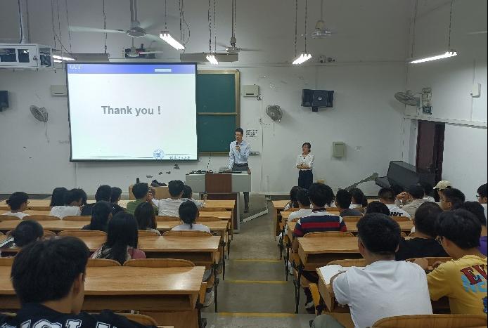 应用化学专业的发展历史和专业的培养特色,让学生对自己的专业形成新的认识,同时引导学生对自己未来发展方向树立初步规划。然后,向学生介绍应化教研室老师的基本情况,倡导学生主动联系意向老师开展科研和双创课题,鼓励和动员学生积极申报并争取进入创新班。最后,在问答环节学生们踊跃向袁亚利和黄艺鹏同志进行提问和交流。