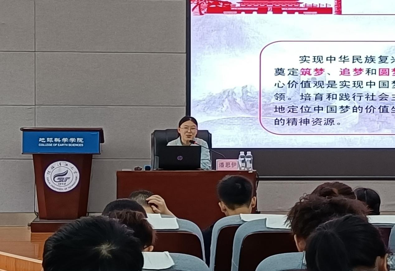 伊始,潘思伊老师通过介绍社会主义核心价值观是实现中国梦的重要价值依托和精神引领这一纲领来将同学们带入课堂。随后,老师通过三方面概括介绍了本讲内容。分别为:人民要有信仰,国家才有力量;观念内化于心,思想融入灵魂;精神外化于行,梦想落地生根。同时,老师也重点强调了12词、24字的社会主义核心价值观的精神内涵。告诫同学们要树牢价值标杆,凝聚发展力量。紧接着又通过案例详细分析了中国梦为何是核心价值观培育践行的方向引领。这样交叉证明强调出核心价值观为中国梦提供长久的精神动力。最后引用习近平总书记讲述的故事告诫同学们要把所学知识内化于心,形成自己的见解,努力掌握为祖国、为人民服务的真才实学,让勤于学习、敏于求知成为青春远航的动力。