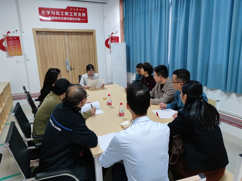 应用化学教工党支部于12栋全国样板工作室召开组织生活会。本次会议由支部书记袁亚利主持,支部全体党员参加。