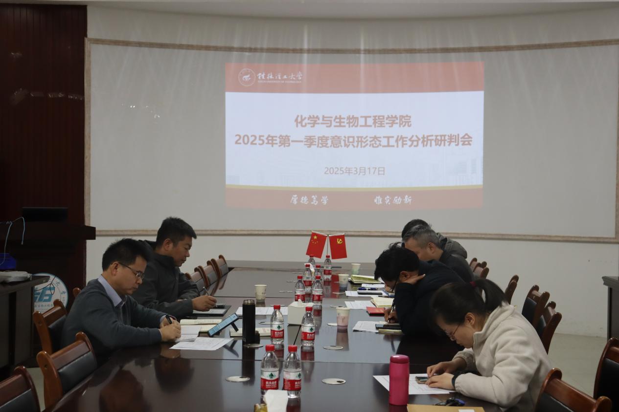 2025年3月17日下午,化学与生物工程学院在12217会议室召开了2025年第一季度意识形态工作分析研判会议。此次会议旨在进一步强化政治担当,切实维护学院意识形态安全,确保学院各项工作的顺利开展。