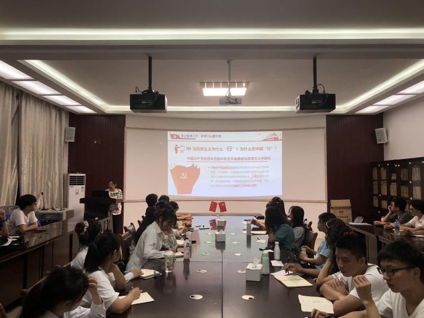 组织学院师生于6月11日晚在12217开展“重温党史,永葆党性”主题党课,本次党课由专职组织员熊艳主讲,共计40余名学生党员参加。