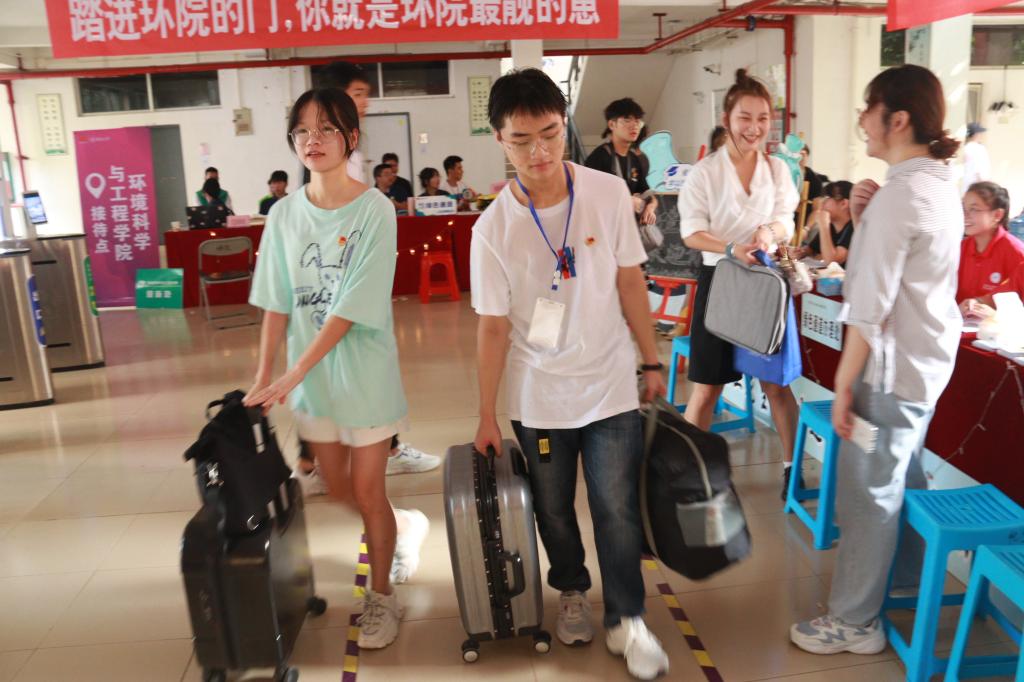 清晨7点30时许,参加活动的所有学生党员热情开朗,衣着端正,佩戴党员徽章,他们不畏骄阳、热情洋溢,发出“有困难,找党员”的口号,在各个服务点,等待新生的到来。一辆又一辆载满新生的校车到来后,党员们热情的引领新生们进入化生学院的绿色通道办理入学手续、热情接待、专业引路、解惑咨询和协助新生搬运行李等一系列志愿服务活动。随后,为了能让新一届小伙伴在炎炎夏日感受到一丝清凉,当日下午3点整,化生学院党建办有序的安排党员为已经报道的新生们送水,即使楼层高,纯净水重,也依旧阻挡不了党员同志的热情。