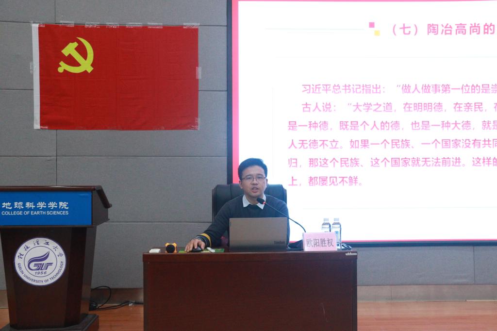 为促进预备党员了解党、熟悉党、忠于党,提高他们的党性修养,更清楚地了解现在的时势政策,11月23日中午,欧阳胜权教授为预备党员讲授主题为《党性修养与对党忠诚》专题党课。