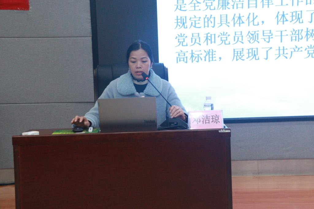 为引导广大预备党员坚定理想信念,提升党性修养,11月24日晚,邓洁琼老师为预备党员讲授主题为《党纪党规与党风廉政建设》主题党课。