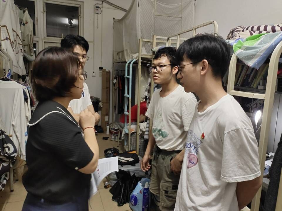 毕业生平安离校,彰显青年力量,展现当代学生党员担当作为、共克时艰的良好风貌,学院党委组建“辅导员+毕业班党员”先锋队深入学生宿舍检查毕业生学习生活情况。