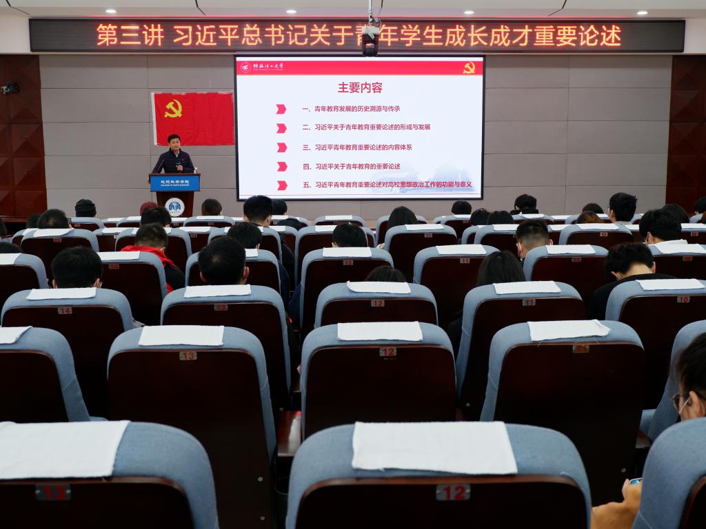 武装部部长、保卫处处长张瑞为预备党员讲授主题为《习近平总书记关于青年学生成长成才重要论述》的专题党课。