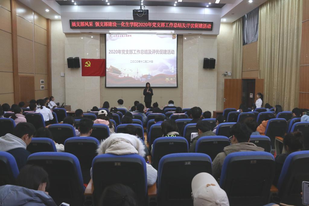 党建办在萃华楼报告厅组织开展“化生学院2020年党支部工作总结及评优促建活动”。学院本科生第二党支部书记高昌洪老师、本科生第四党支部书记梁精华老师、研究生第二党支部书记朱皓老师、18级辅导员张伟颀老师、学工办见习老师汤玉昆老师及各学生党支部全体成员参加了本次活动。