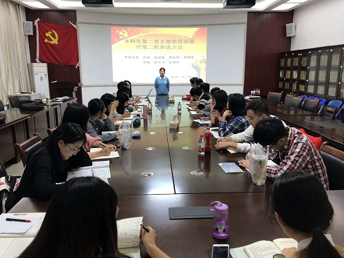 会议开始,由张思宇同志宣布本次会议的主题、要求、以及流程,随后,吴冠锋等7名积极分子分别就入党动机、对党的认识、入党具备的条件以及成为积极分子的一年中自己在思想、学习、工作、生活方面的表现向大会做汇报。与会党员针对积极分子所做的发言进行提问,同时指出他们的不足,希望他们自觉增强理论知识的学习,不断提升自我修养,真正做到思想上入党。最后支部党员结合其各种材料进行讨论与表决,最终通过支部大会讨论推荐了发展对象名单。