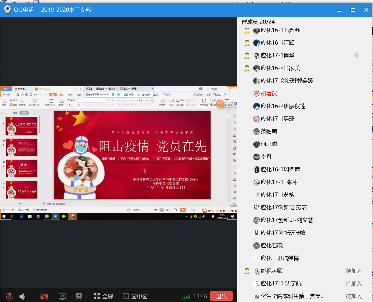 本科生第三党支部于4月30日通过线上召开“阻击疫情,党员在先”主题学习会,会议由曾小玲同志主持,支部全体党员同志参加。