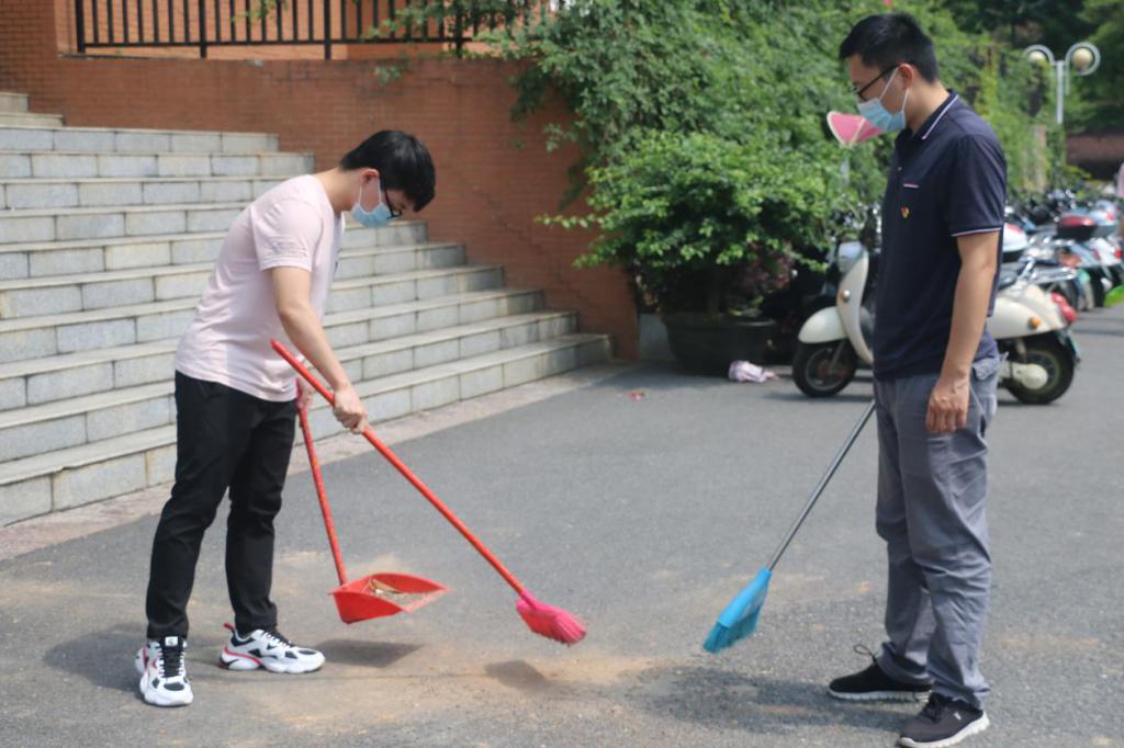 师生的学习和生活提供更好的环境。烈日炎炎,各位发展对象和预备党员卖力的挥动着双手,一点一滴的扫除地上的垃圾。体现出了一名发展对象和预备党员应有的担当和奉献精神。