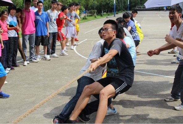 上午9:00,开幕式在足球场主席台准时开始。何宗辉老师在开幕式上希望同学们在活动中,展示自我,增进交流,收获友谊。在运动员代表以及裁判员代表发言后,比赛正式开始。本次趣味运动会将竞技与娱乐结合一体,上午进行的是拔河比赛,下午进行的是“杯水传情”、“猪八戒背媳妇”、“慢骑接力”以及“铺路搭桥”四个项目。在工作人员的得力组织安排下,各个项目的比赛紧张有序地进行,各参赛团队的队员们热情高涨,奋勇争先,现场的拉拉队阵阵加油声也响彻运动场。每一个比赛项目都在智慧与运动中,散发着团队协作的无限魅力。经过激烈的角逐,拔河比赛环节获得前三名的分别是生物10级、应化11-1班、研究生代表队。在趣味运动环节获得前三名的分别是化工11-2班、化工12-4班、应化12-1班。