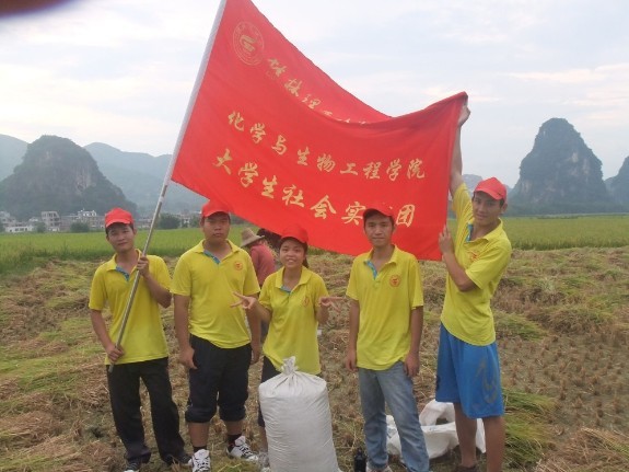 暑期”三下乡”社会实践团队在卫田村党组织第一书记杨公银书记的带领下来到村民的稻田,义务为村民收割成熟的稻谷。