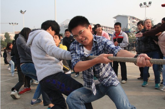 12月7日,秋高气爽,阳光灿烂。雁山校区运动场和篮球场上人头涌动,欢声笑语,气氛热烈,化生学院2013年秋季期趣味运动会正在如火如荼地举行。