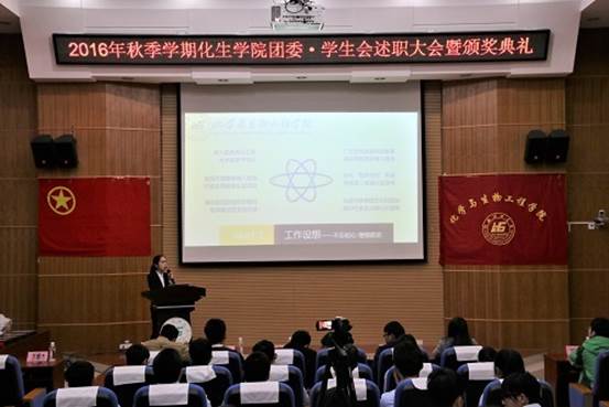 最后由主席苏耀杰作述职报告,明确了新学期的工作重点:传承化生篮球精神,续写不败神话;以歌声颂“五四”,化生学子展风采;做化生学子,打造品牌活动;祝福永相随,化生学子情。他强调组织内部要牢记“服务同学,锻炼自我”的宗旨,努力成为一个受学院欢迎的、具有执行力的多元化组织;最后对团委•学生会做出了加强队伍建设,高标准、严要求,高质量的做品牌活动的工作展望。