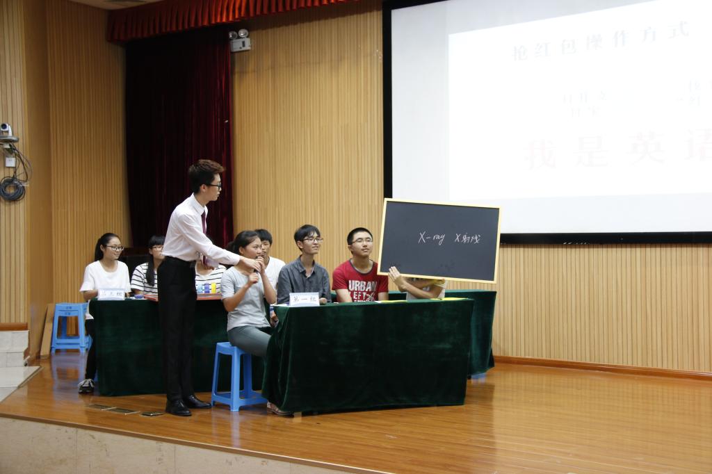 于雁山校区图书馆报告厅举行首届“谁是单词王”英语单词竞赛。特别邀请外国语学院莫娜老师和14级胡轶旸同学担任评委出席本次活动。参加此次活动的还有团委书记饶筠筠老师,学工办刘宇辉老师及各班级学生代表。