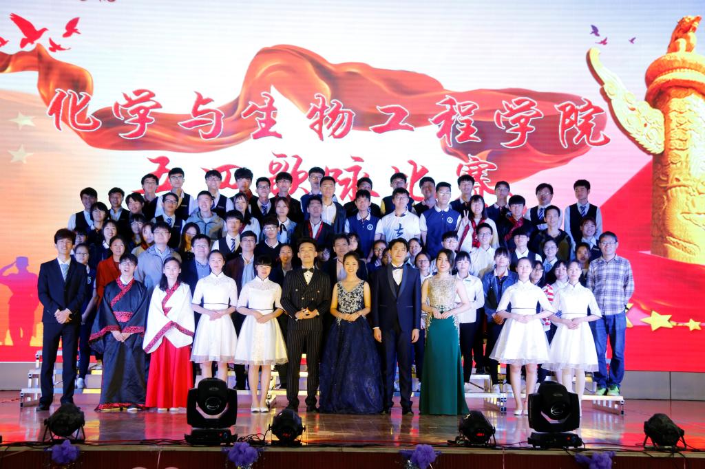 随后,比赛正式开始。本次比赛一共有十六支参赛队伍,分为“看新生,谱化生华章”“展未来,逐青春梦想”两个篇章。化药17-4班一首激情澎湃的《红旗飘飘》拉开了比赛序幕,比赛现场各参赛队伍以良好的精神风貌,配以朗诵、舞蹈、独特造型等艺术形式抒发对祖国的热爱之情,充分展现了当代大学生的青春活力。经过激烈角逐,最终应化16–1、2班《真英雄》获得一等奖;化药17–3班、化工16–1、2班荣获二等奖;生工17–2班、化工17卓越班、化药17–4班获得三等奖;吴雨欣同学获得最佳指挥奖;化工16–1、2班获得最佳人气奖。