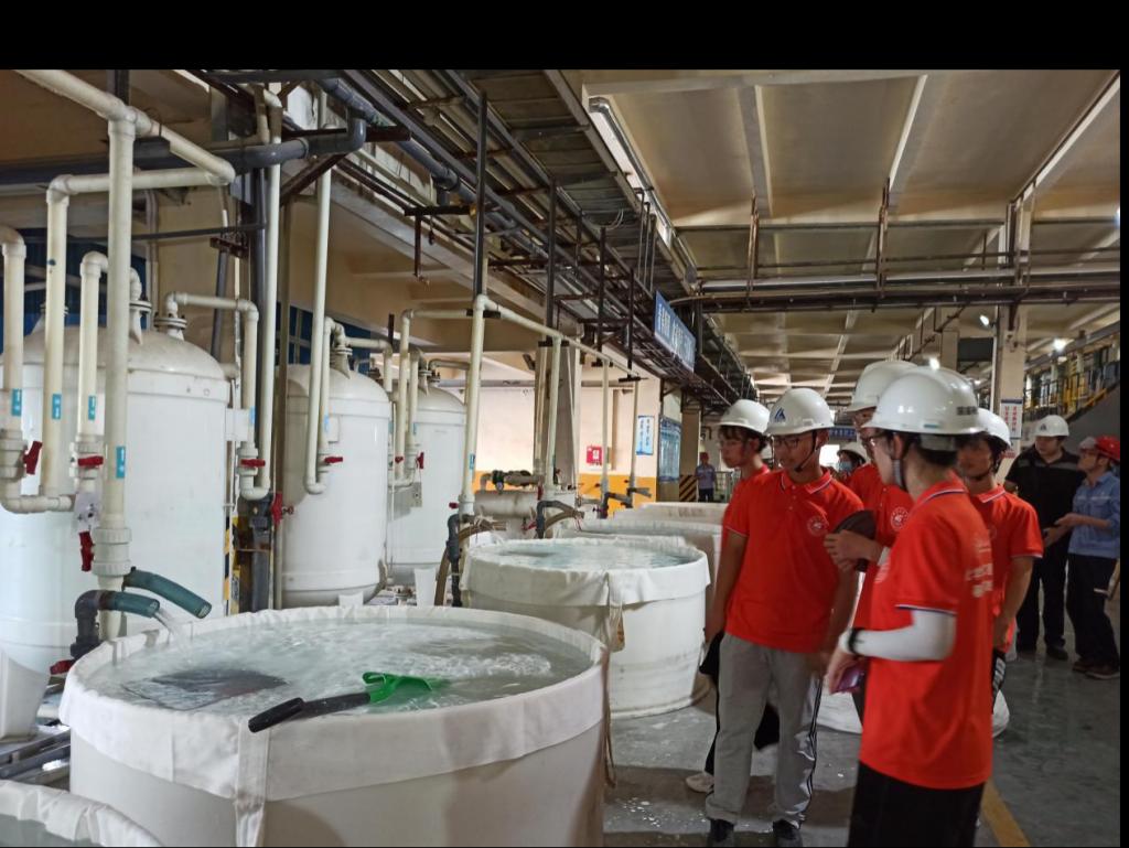 在朱皓老师和郭怀兵老师的带领下,团队成员实地考察了稀土原材料冶炼分离的四个过程:酸溶、萃取、沉淀、灼烧,对稀土原料的提取分离有了更深入的认识,把实验室的认知学习和工厂的实践操作结合,做到知行合一,内化成自身的一部分。