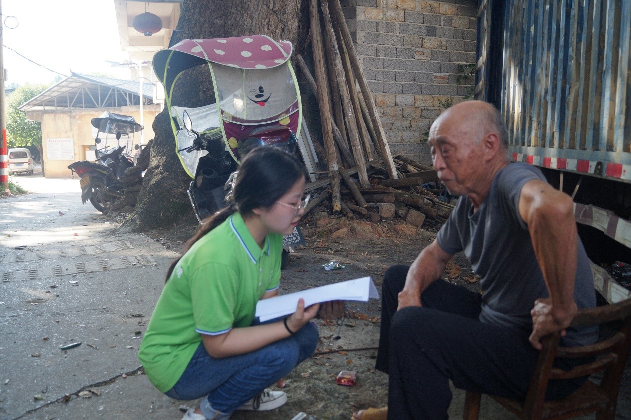 实践团成员首先来到了灌阳雪梨的核心产区——永富村,队员就本村水果种植产业情况采访了永富村支部书记及村委会成员,并以调查问卷的形式走访当地果农。采访和调查结果显示,当地居民认为乡村振兴战略的实施对永富村的发展起着十分重要的作用,多元化的种植模式提高了大家的收入,同时也期望能够拥有更好的销售平台。