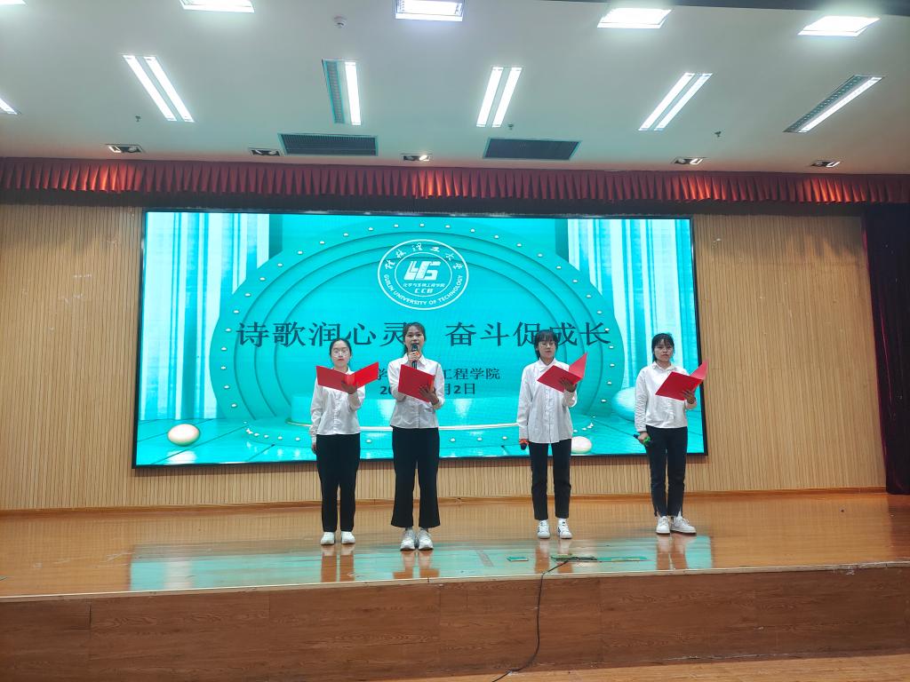 大学生塑造坚韧的人格,以奋斗精神铸就青春底色,用文化滋养学生的精神生活,学院于6月2日举办“诗歌润心灵 奋斗促成长”诗歌朗诵大赛,学院各班代表组队参加比赛。