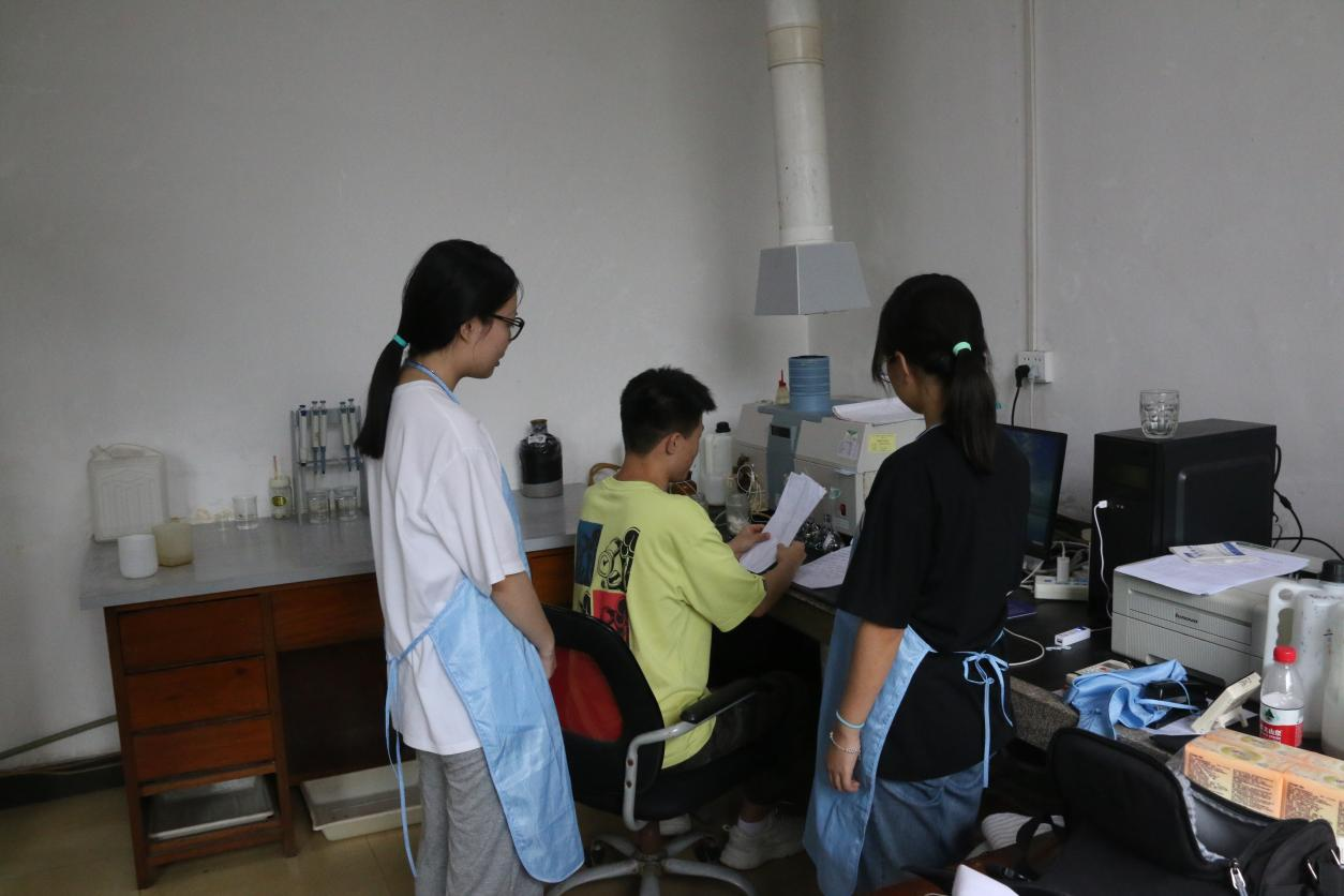 实践团成员使用AES-双道原子荧光光谱仪检测土壤中的汞元素和铋元素含量