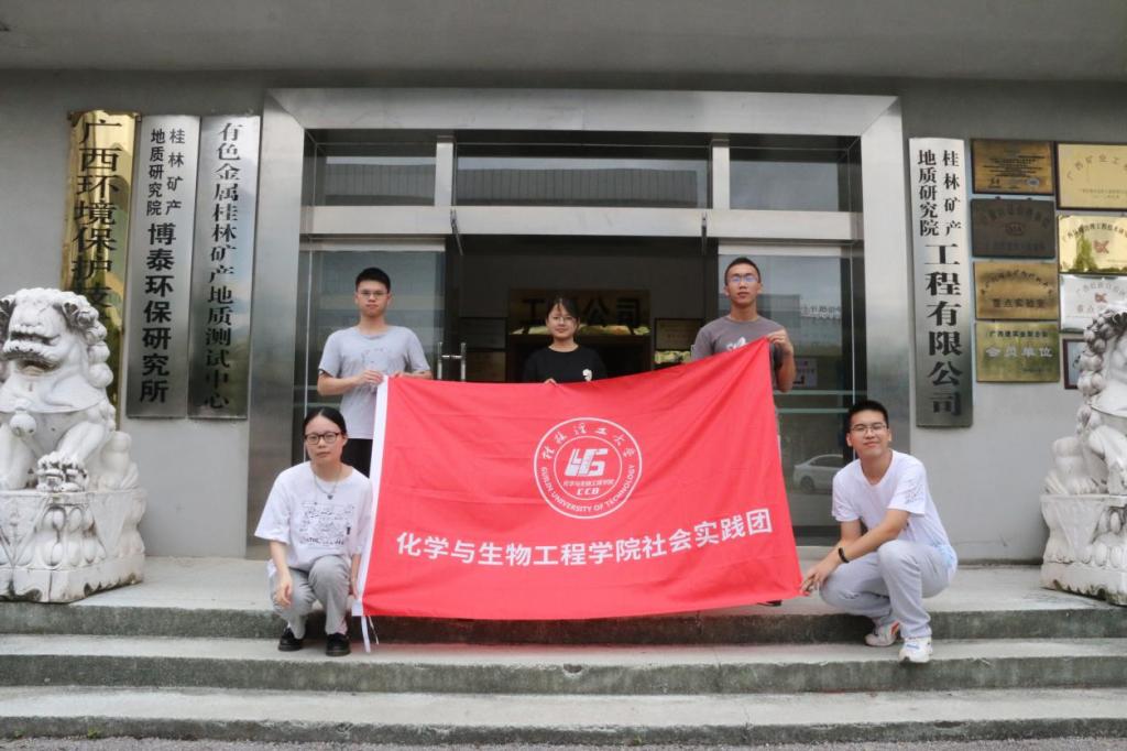 “学以致用”专业实践实践团在有色金属桂林矿产地质研究院分析测试中心门口合影