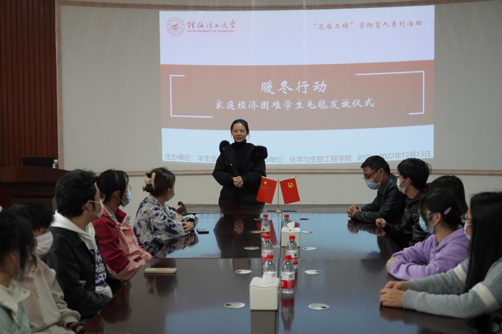 为贯彻落实高校家庭经济困难学生资助政策,进一步帮助家庭经济困难学生更好地学习生活,解决家庭经济困难学生的现实需求,2022年12月13日,学院开展了“暖冬行动”为家庭经济困难学生发放过冬毛毯。学院党委副书记李少华、辅导员梁精华参与发放仪式。