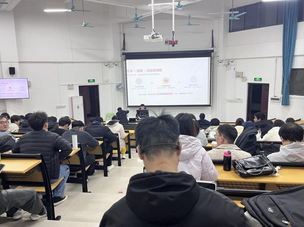 在走访宿舍过程中,研究生辅导员秉持严谨负责的态度,对宿舍进行了全面细致的安全检查。重点排查是否存在使用违禁电器、私拉电线等安全隐患,不放过任何一个可能危及学生安全的细节。每到一处,辅导员都耐心地向同学们强调冬季天气干燥,用电安全至关重要,提醒大家要严格遵守宿舍用电规定,杜绝违规用电行为,从源头上预防火灾等安全事故的发生。在班会组织过程中,各班级首先向同学们详细传达了学校《关于做好2026年元旦假期假前学生安全管理工作的通知》中的各项安排与具体要求,并聚焦安全重点工作,结合详实生动的案例,分别从交通安全、网络安全、宿舍安全、实验室安全、防电信诈骗、防溺水、心理健康等方面加强了教育与提醒,为元旦假期筑牢安全防线。