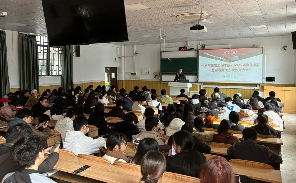 为切实做好寒假期间研究生教育管理与服务保障工作,构建安全和谐校园环境。1月14日-15日,学院在雁山校区召开了2026年研究生寒假离校暨延迟离校安全教育大会,学院分管研究生工作副院长孔翔飞、研究生和全体研究生参加了会议。