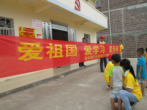 活动开始,队员们拉开横幅,教学生们读“三爱”,写“三爱”,耐心教导他们理解“三爱”的含义。在整个活动过程中,同学们欢欣雀跃地用那充满稚气的童音大声地朗读着“爱祖国,爱学习,爱劳动”,并用石子在地上一笔一划地写着“爱祖国,爱学习,爱劳动”,其中有位名字叫卢奕的小女孩,在志愿者拿给她的一张纸上认真地写着“三爱”,她和她的同学们的认真态度感动了在场的所有志愿者们。在小学生的身上志愿者们看到了教育宣传“三爱”的力量,也更加深刻的明白了暑期实践“三下乡”活动的深刻意义。