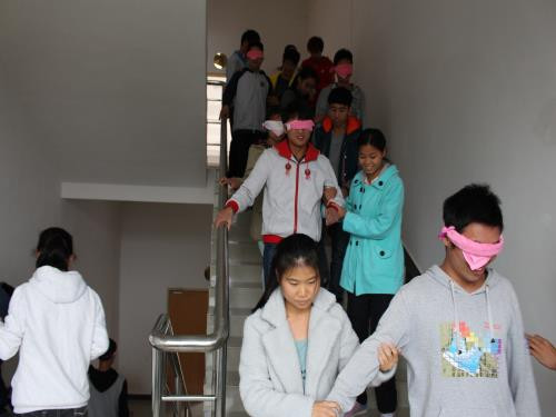 活动随着一段时间的热身后,全体成员被分为四个小组,在饶筠筠老师的引导下,逐一开展了“团队建构”、“成长历程”、“戴高帽”、“信任之旅”以及“笑迎未来”的心理团体辅导活动。活动中的“信任之旅”让心理委员们留下了最为深刻的印象,活动通过让心理委员们分别扮演“盲人”和“聋人”的角色,两两一组,合作走完一段设有不同障碍的曲折旅程。路程中,参与者要克服失去光明、失去言语表达能力的恐惧,体验并战胜内心的矛盾,学会互帮互助学会信任他人。活动在《明天会更好》的音乐声中落下帷幕。