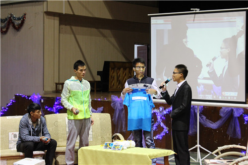 11级化工专业覃祥德同学。他从学院的篮球队走向了他的国际马拉松赛场。坚持跑步一年多,他参加了五次国际马拉松比赛。在访谈中,他跟同学们分享了他在跑步历程中收获的人生体验。让在场的所有同学,为他所传递的理念而感到钦佩。覃祥德希望把马拉松当成终生的兴趣爱好,并鼓励大家一起加入到跑步的队伍中来,将“跑步服务于生活”、“运动在于持之以恒”、“梦想什么时候实现都不晚,只要敢于坚持!”的人生信念坚持并发扬下去。
