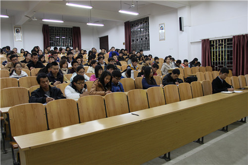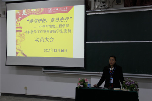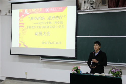 2月16日晚上7点40分在雁山05314教室召开了审核评估学生党员动员大会,学院党委副书记陶剑飞,学生党建办公室主任何宗辉老师以及全体学生党员参加了会议。