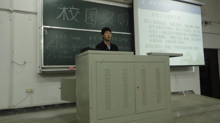 为了做好宿舍安全教育工作,引导同学们学习安全知识,提高安全防范意识,10月30日晚,化生学院在雁山校区05102教室召开了学院全体宿舍长会议,本次会议由学院何宗辉老师主持。