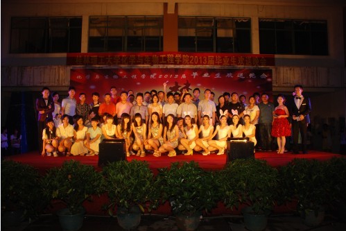 朝夕耕耘,图春华秋实;十年寒窗,求学有所用。似水流年,体味完美人生;分手再见,走向灿烂明天!6月15日晚,以“开启中国梦,融汇化生情”为主题的化生学院2013届毕业生欢送晚会在雁山校区三栋广场隆重举行。化生学院党委胡祖生书记、院长李建平教授、党委陶剑飞副书记、副院长杨建文教授、院长助理海洪副教授与学院五百多名师生一同观看了晚会。