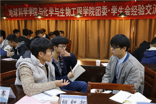 团委˙学生会。随后地球科学学院秘书处秘书长张舒琦就地院的学生工作情况及对全体成员的展望等方面进行介绍。接着是部长自由交流环节,两院各部门部长进行相互交流,大家就自己的疑惑或经验进行了讨论。最后,两院出席人员合影留念。