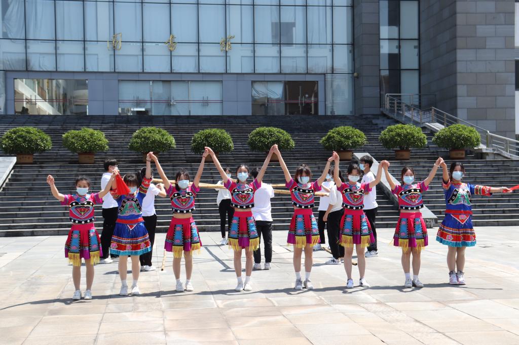 活动伊始,观看了校艺术团带来的舞蹈“站在草原望北京”,随后由学院壮乡社表演了竹竿舞“广西尼地呀”。竹竿舞又称跳竹竿,是一个以团队合作为方式的舞蹈,具有浓厚的民族文化特色,是广西壮族民间舞蹈形式之一。此次活动引来无数师生的观看,随后,围观的同学纷纷加入了跳竹竿舞的行列里。初练竹竿舞的同学,有的因为跳错了步伐就被夹掉了鞋子,有的因乱踩竹竿而仰面朝天。在经过一系列的练习过后,学生们个个精神饱满,动作标准到位,持竿者在音乐的节奏中蹲、站等姿势变化多样,在有节奏、有规律的碰击声里,跳舞者在竹竿分合的瞬间,在欢快的乐曲中,敏捷地进退,潇洒地跨竿,演绎出美丽的舞蹈。