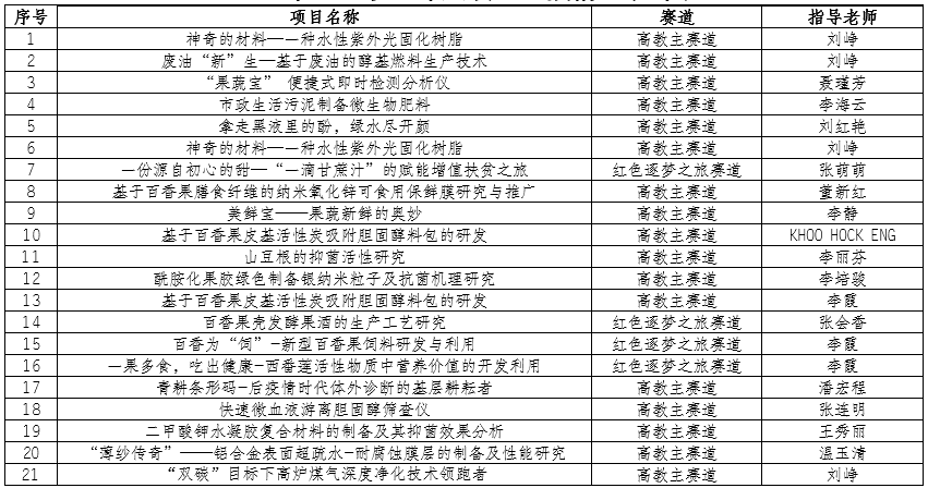 积极动员学生报名参赛,共有33个创新创业项目,其中21个项目脱颖而出,包括高教主赛道17项、青年红色筑梦之旅赛道4项。
