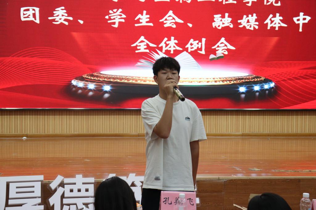 为增强新一届团委、学生会、融媒体中心成员的凝聚力,推进新学年重点工作开展,为新学年学生会工作奠定良好基础,院团委于2022年9月19日组织召开了新学年学生会工作专题会议。团委副书记王凯浩老师、团委学生会新一届主席团、部长团及骨干成员参加了会议。会议由学生团委副书记苏铮同学主持。