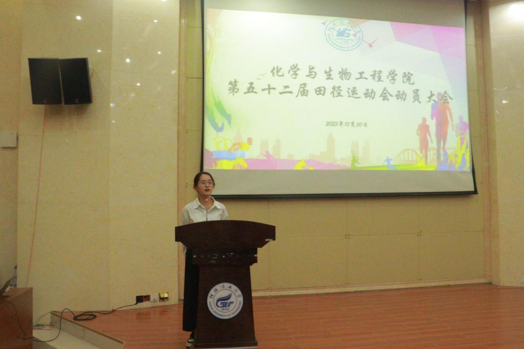 于雁山校区12栋萃华楼报告厅召开第五十二届运动会动员大会暨安全教育大会。学院团委副书记王凯浩、学院全体辅导员老师和全体运动员到场参会。