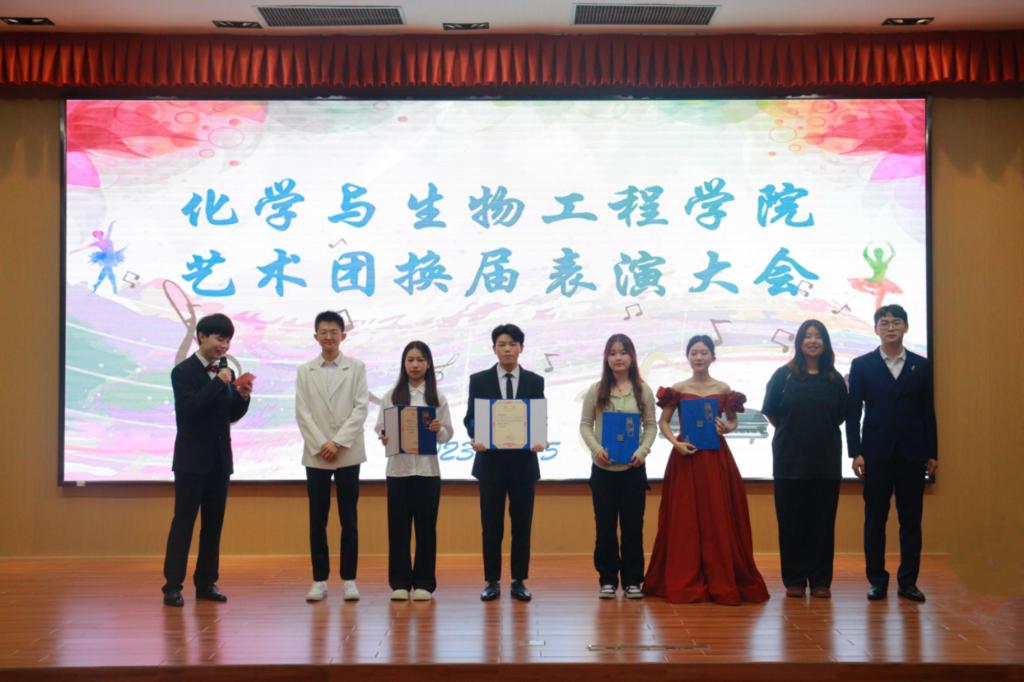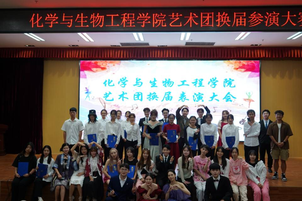 于2023年9月25日下午15:30在图书馆报告厅举办了以“励志、自强、务真、求实”为主题的化生学院艺术团换届表演大会。校大学生艺术团学生代表、学院团委学生会融媒体中心和艺术团学生骨干、消防车乐队、南棠剧社以及各学院艺术团学生代表参加此次大会,共计200余人出席。