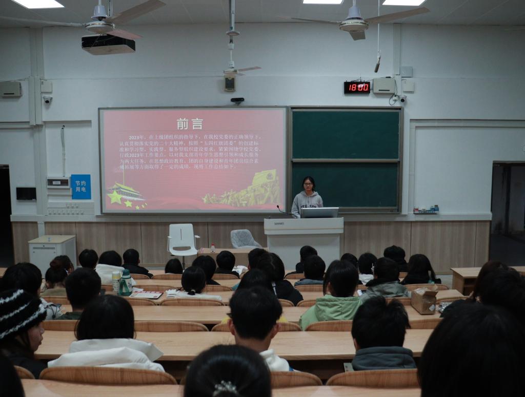 共青团基层组织改革,推进全面从严治团向基层延伸,根据《基层团组织书记述职评议考核暂行办法》(团组字〔2021〕1号)及团区委有关要求,结合我院实际,学院团委分别于12月21日下午和12月22日晚上在雁山校区07318和05103教室召开2023年度基层团组织书记述职评议大会。学院团委副书记王凯浩老师、学生团委副书记叶子剑、于湘以及各团支部书记参加了此次会议。