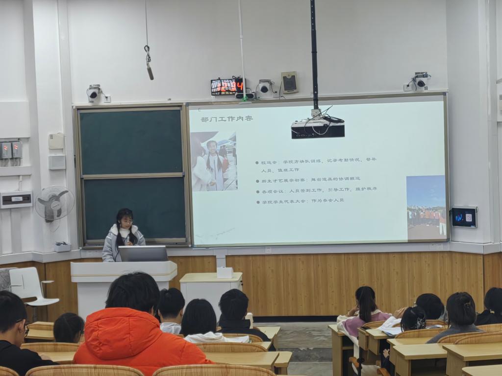 最后,王凯浩老师进行点评总结。他充分肯定了过去一学期取得的成绩,对全体学生干部的辛勤付出表示衷心感谢。他希望学院全体团学干部要敢于担当、不辱使命,坚决摒弃不愿做事、不敢扛事、装样子、混日子的思想,积极思考在促进学院团学工作高质量发展中“本部门何为”,奋勇拼搏、开拓进取;要服务同学、无私奉献,绝不做“学生官”,要做同学友,立足岗位实际,全心全意为同学们办实事、解难事、做好事;要强化学习、提升本领,坚持守正创新,善于向部门前辈、指导老师和兄弟单位学习好经验好做法,不断提升组织协调能力和服务同学水平;要奋楫争先、勇创佳绩,结合学院学科专业特点,聚焦志愿服务项目、社会实践、课外科技创新等工作,持续打造学院团学工作品牌项目。