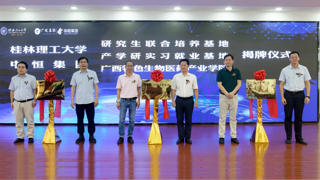 的到访表示热烈欢迎,并对双方开展的深度合作表示由衷期待。他表示,中恒集团与学校合作的初心不变,希望与学校在人才培养、产学研融合、实习就业等方面进行深度合作。随后,集团代表与学校代表共同上台,为研究生联合培养基地、产学研实习就业基地、广西特色生物医药产业学院揭牌。揭牌仪式后,方亮院长为企业导师颁发中恒集团研究生导师聘书。
